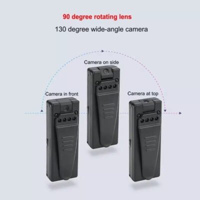 - 90-Degree Rotating Mini Body Camera: 90 Degree Rotating Design for the Hidden Video Recorder, easy to hide and shoot, provide horizontal and vertical angles, perfect fit for your demand. The back clip and the hanging hole are designed to be easily clipped in the pocket/collar/belt/portable.